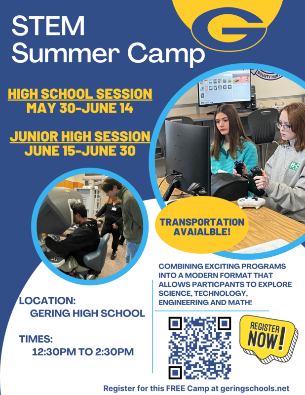 - Gering High School STEM Camp - May 30th to June 14th