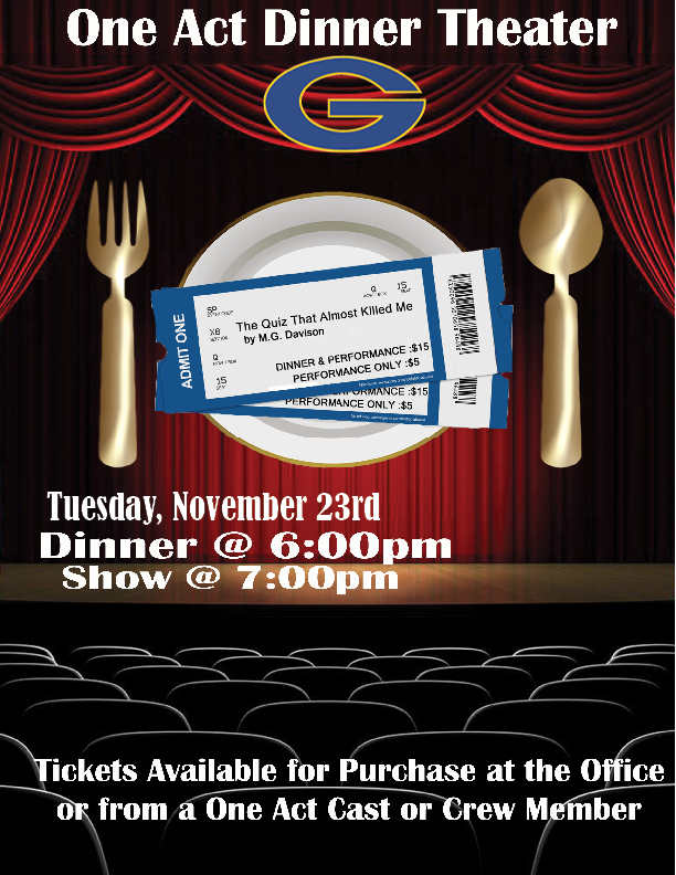 Tickets are available at the GHS Office or from a One Act cast/crew member.