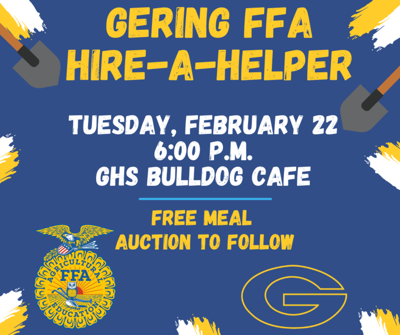 We invite the community to attend the 2nd annual Gering FFA Hire-A-Helper event supporting the Gering FFA Chapter! For questions or additional information contact Carrie Johns at cjohns@geringschools.net